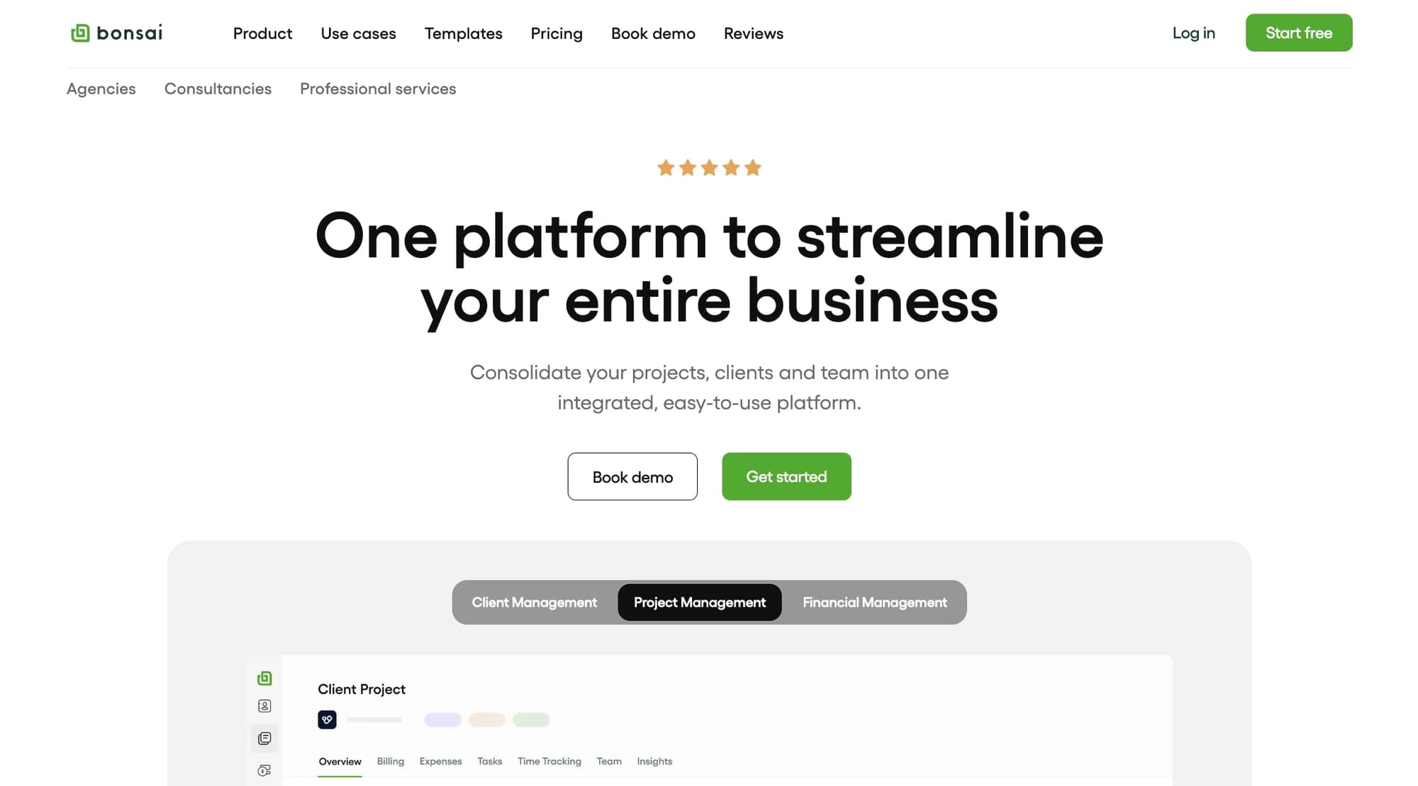 Bonsai is another business management tool focused on freelancers and small businesses. While it is capable of much more, it comes with solid features for accounting professionals, bookkeepers, and CPAs.