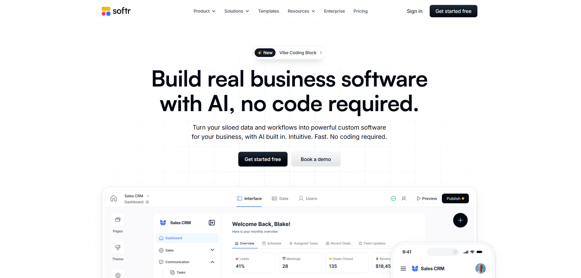 - What it does: Softr is a no-code tool for building client dashboards and portals on top of existing data sources. It connects to databases like Airtable and Google Sheets and lets teams design pages, permissions, and workflows without writing code.