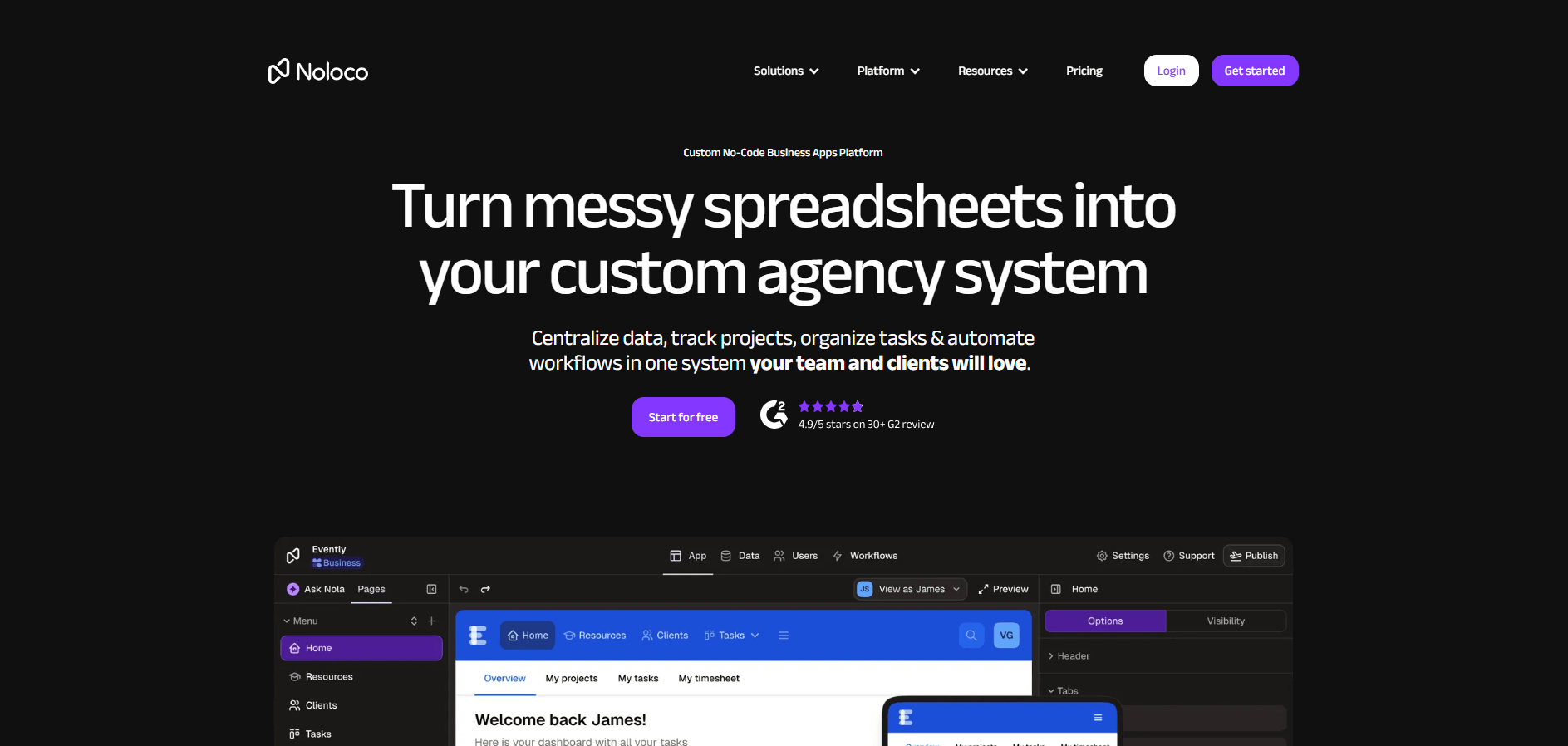- What it does: Noloco builds client dashboards with field-level and row-level permission controls. It connects to external data sources or uses its own native tables and includes a visual workflow builder for automations.