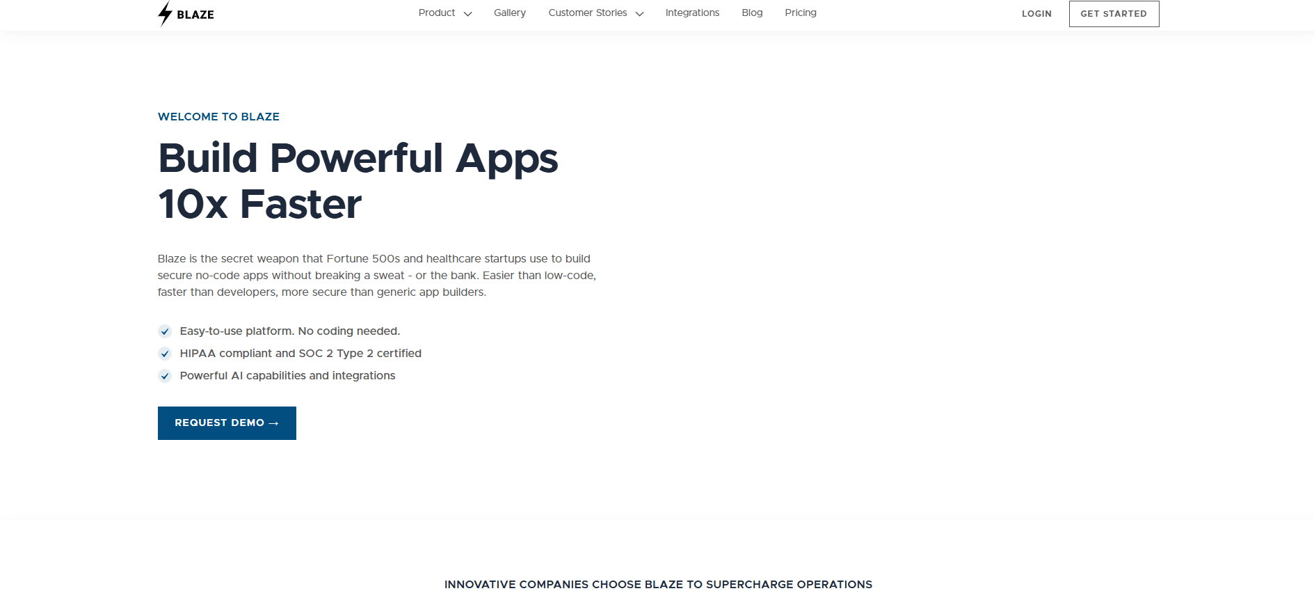 - Blaze if you work in healthcare or finance and need HIPAA or SOC 2 compliance built into the platform.