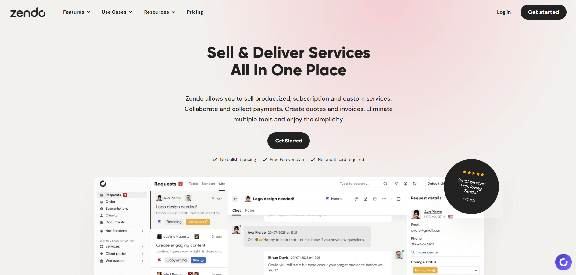| Zendo | Service sales and client requests | $37/month | Service requests, quotes, invoices, and client chat in one workspace |