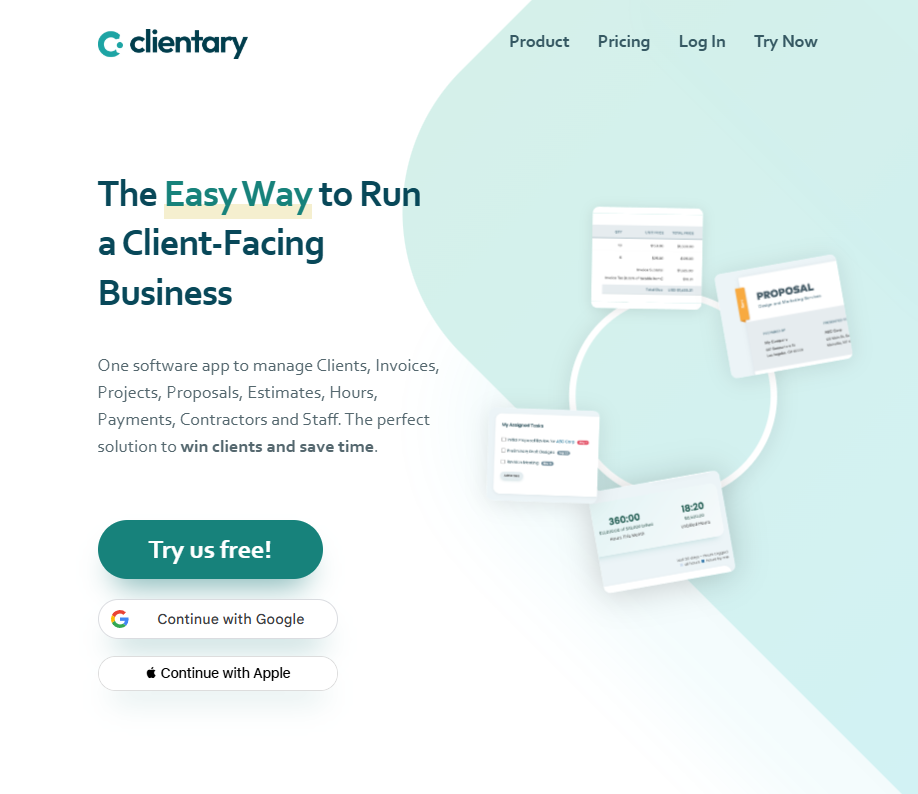 | Clientary | Small client-service teams | $19/month | Proposals, invoicing, and automation in one dashboard |