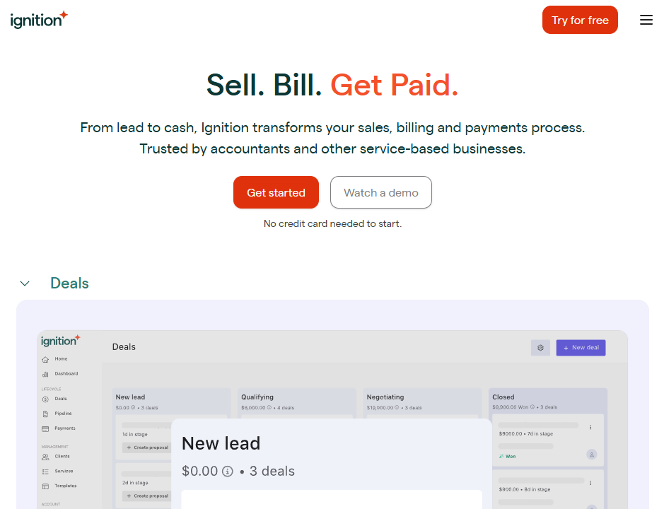 | Ignition | Accountants and consultants | $39/month | Automates proposals, contracts, and client billing |
