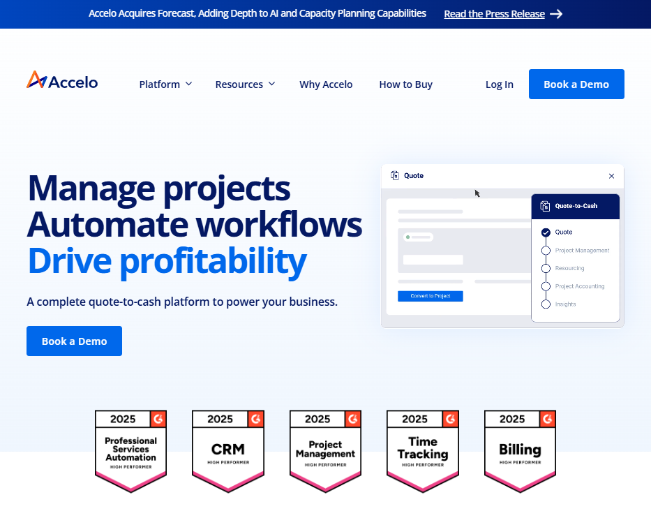 - What it does: Accelo is a professional services automation (PSA) system that combines onboarding, project tracking, billing, and resource planning. It ties onboarding directly to delivery workflows.