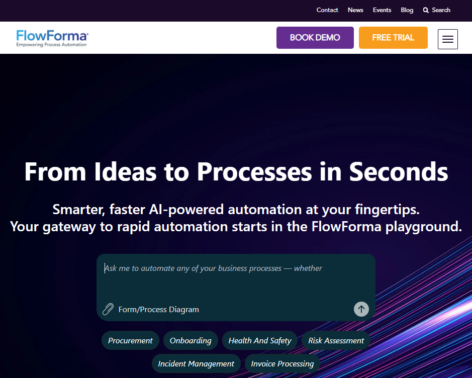 - What it does: FlowForma is a no-code process automation tool used by enterprises to digitize onboarding and approvals. It combines form building, workflow management, and reporting.