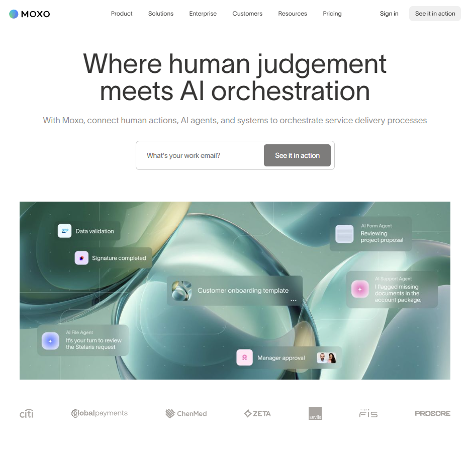 - What it does: Moxo is a client collaboration and workflow tool that focuses on onboarding and service delivery. It gives clients guided access to documents, forms, and status updates.