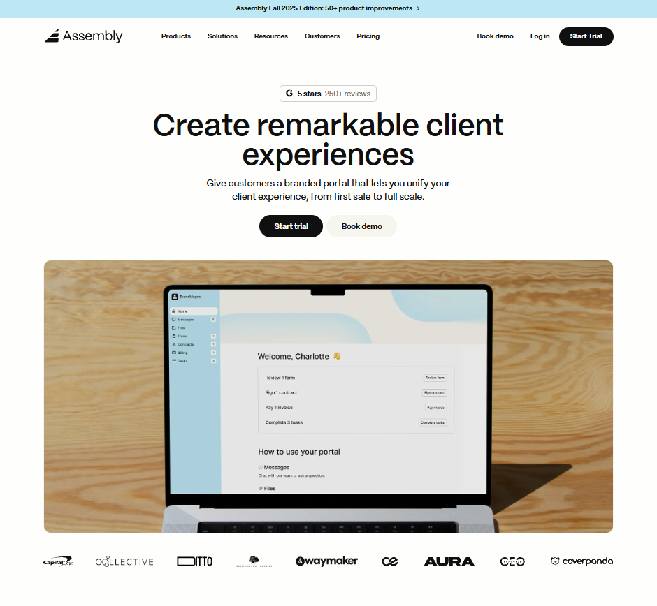 - What it does: Assembly is a CRM and client portal that connects messaging, files, and billing in one organized workspace. Service teams use it to manage client communication, documents, and payments without switching between tools.