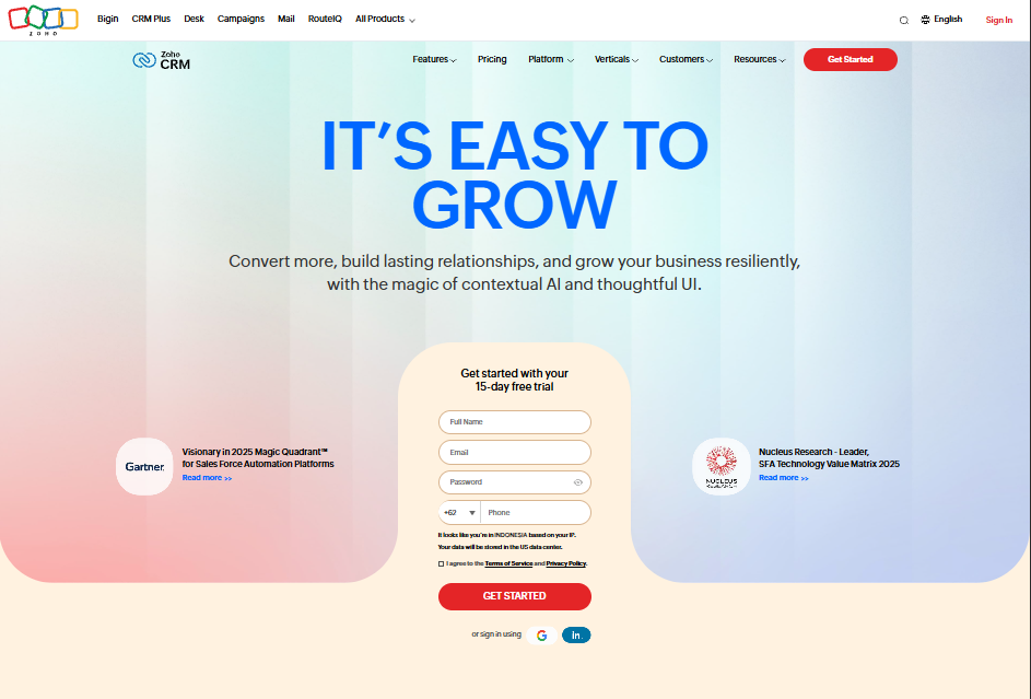 - What it does: Zoho CRM combines contact management, automation, and billing tools in one system. Its client portal gives customers access to invoices, documents, and project milestones.