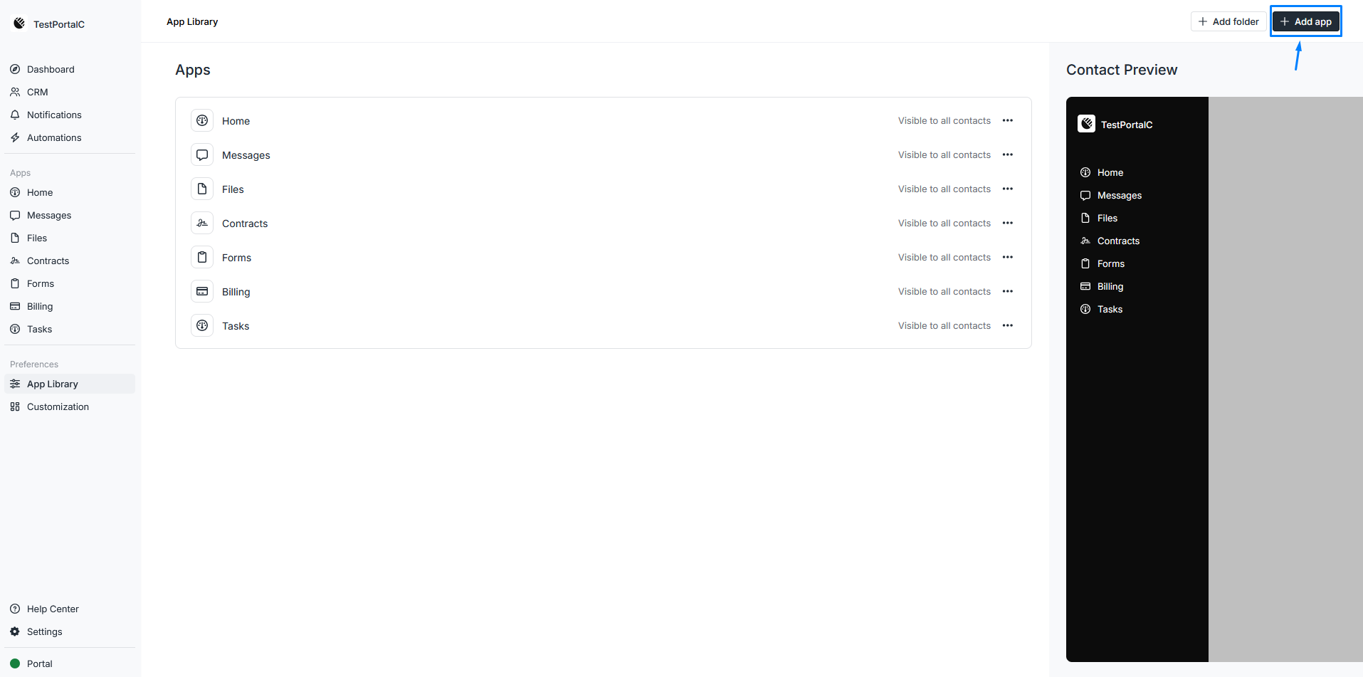 Start by setting up your client portal before inviting clients. In your Assembly dashboard, go to the App Library on the side bar. Here, you can choose which apps your clients can see.