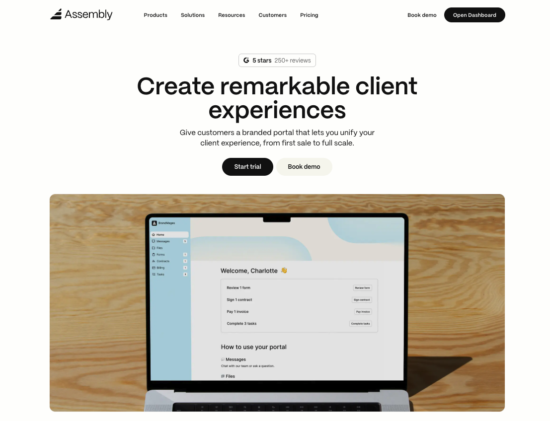 Assembly is a no-code customer portal platform built for professional service businesses. You can create tailored branded portals where clients access files, invoices, projects, and communication without switching between multiple tools.