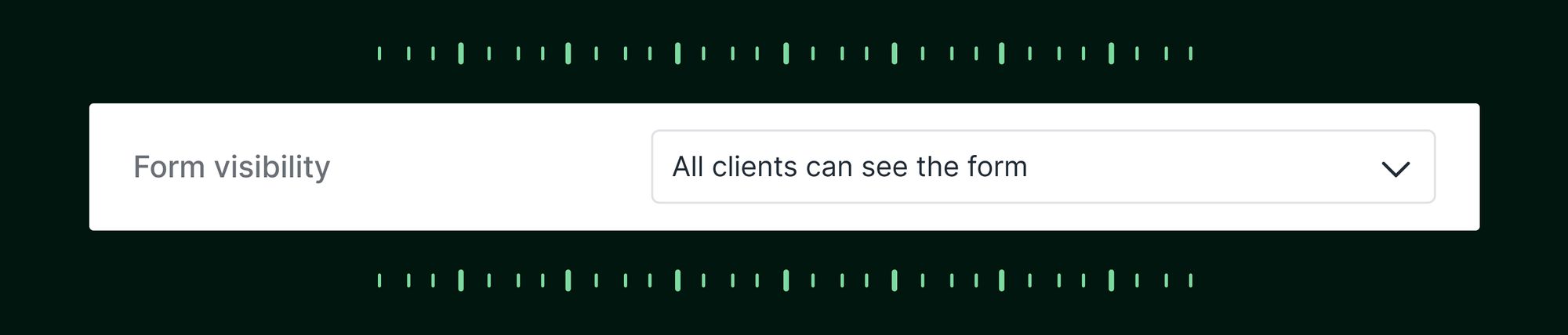 When you create a form you now have a new Form visibility section. This gives you the flexibility to select the option Clients can only see the form if you send it to them which works just like our old forms. Or you can select the new All clients can see this form option. When this new option is selected, all clients automatically see this form in their client portal. Selecting this option is a great fit if you want to use the form to let clients submit work requests, support tickets, and more.