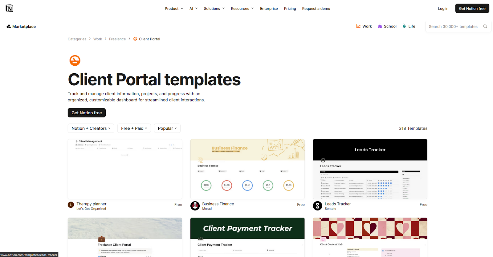 Notion’s official template gallery includes hundreds of client portal designs you can start from. You can also find community-built versions online. These templates can save time when setting up sections like tasks, files, and updates.