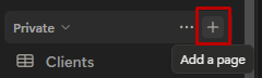 In your main Notion workspace, click the + in the sidebar to create a new page.