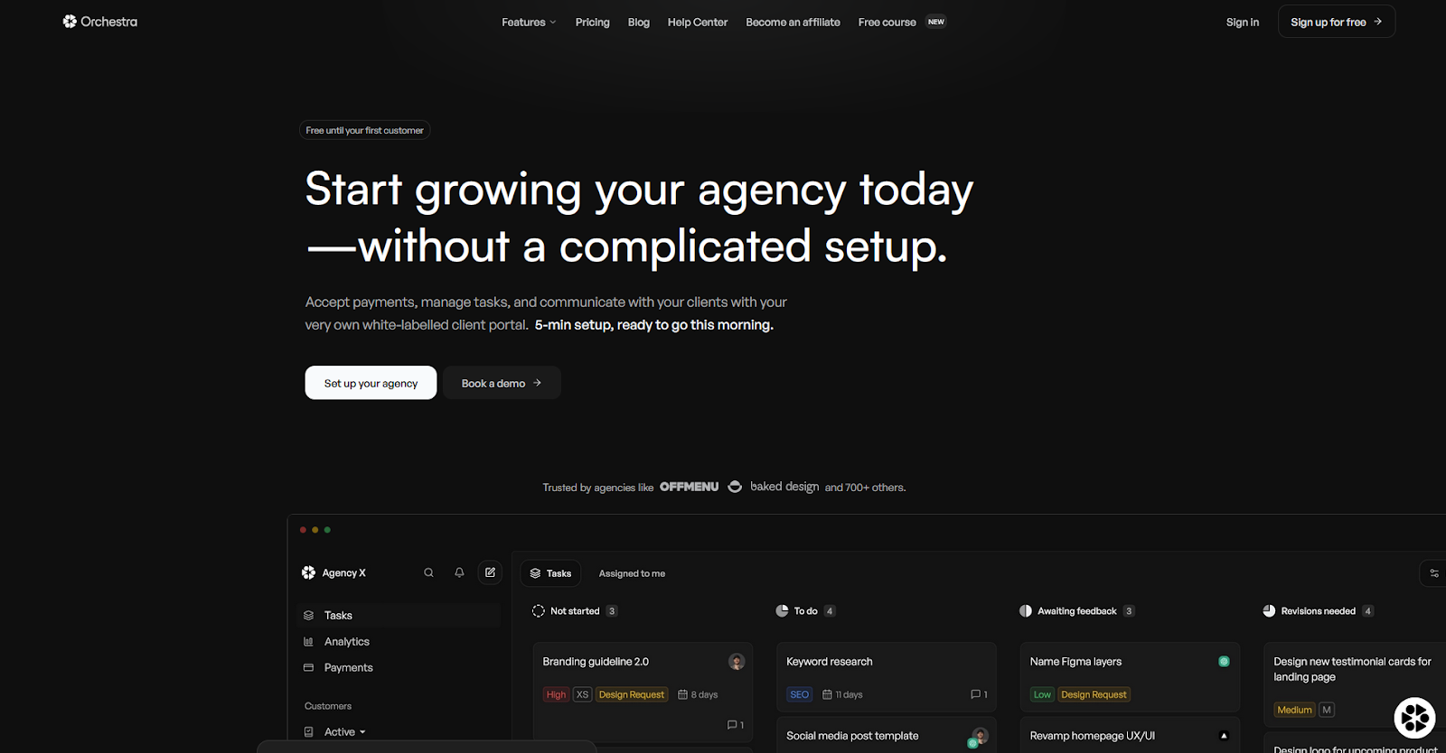 - What it does: Orchestra is a client portal platform built for selling and managing white-labeled subscription-based productized services.