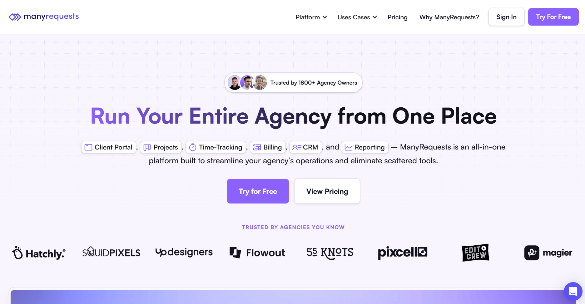 - What it does: ManyRequests is a client portal and project management platform built specifically for creative agencies. It handles service requests, client communication, billing, and project delivery in one branded workspace.