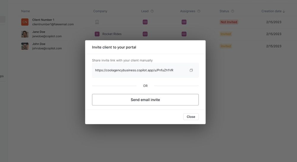 When you’re ready, you can finally start inviting your clients so they can use your portal.