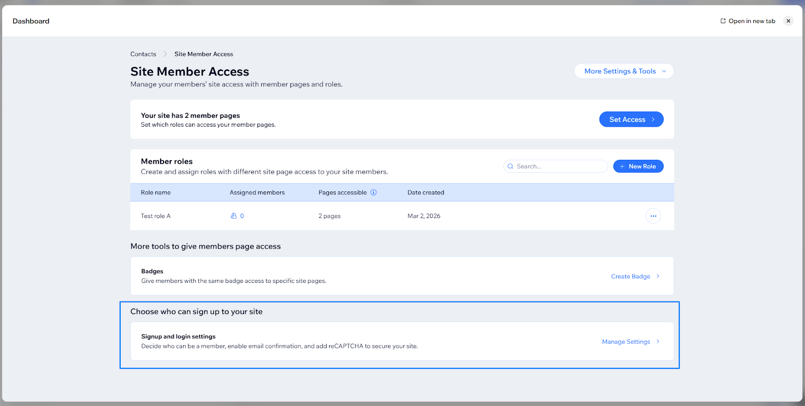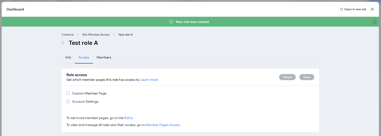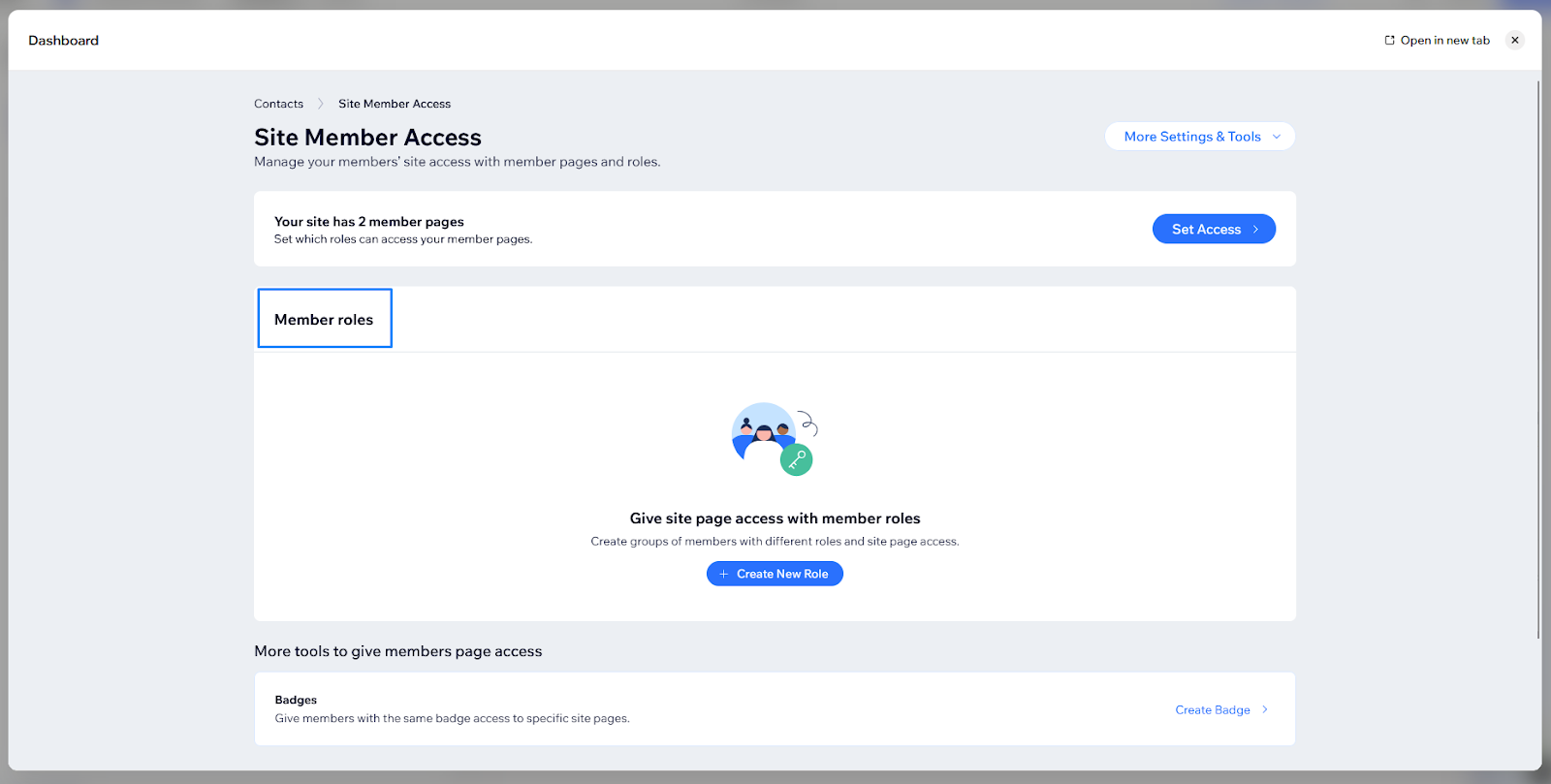 This will open the Site Member Access panel, where you can see Member Roles.