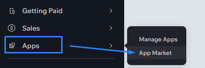 Open your site in the Wix Dashboard and in the left toolbar, click Apps > App Market.