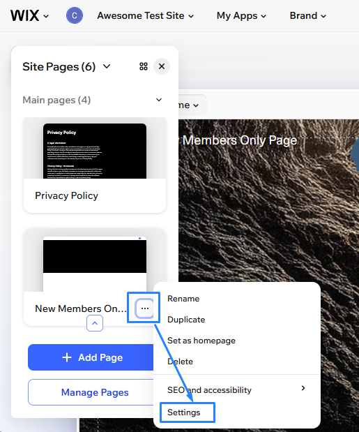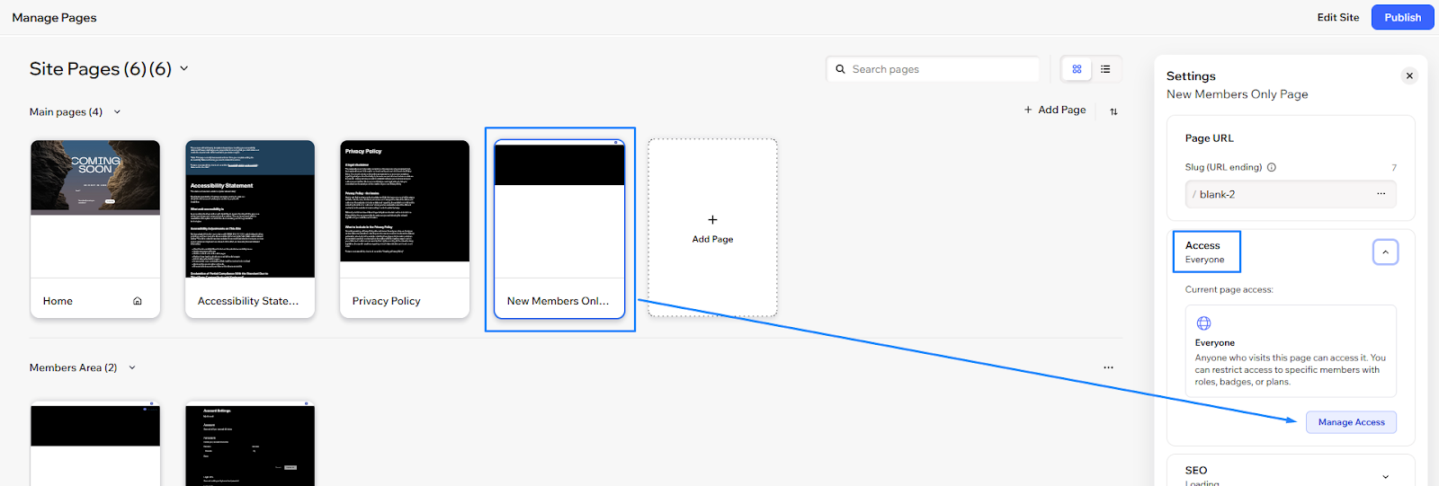 Tip: You can also create a normal page from the main Site Pages panel if you want to use a layout you've already designed, then restrict it to members later.